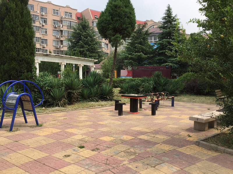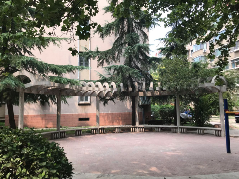 小区的绿化较好,树木比较高大,花园的面积不大但是很多,有些一楼业主,会在楼下的小花园中种花种菜。小区内有一个小广场,中是一个雕塑,周围是各种健身器材,可供平时锻炼使用。