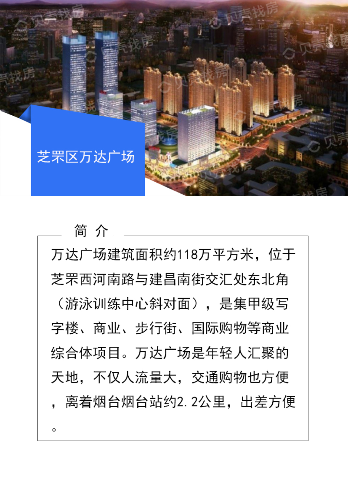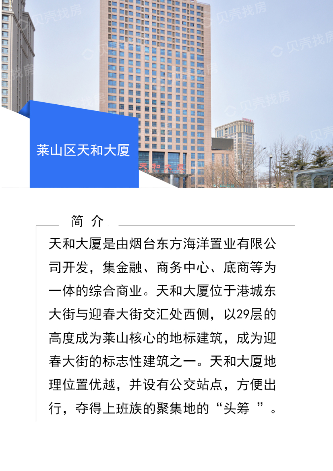 下面小编就以芝罘区万达广场、莱山区天和大厦、开发区科技大厦为例给小伙伴们推荐写字楼旁1公里以内的优质房源,以供参考。