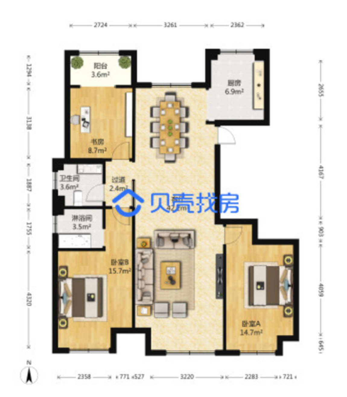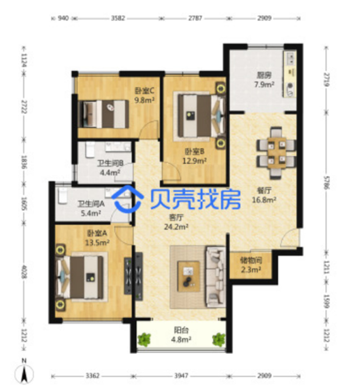 房子户型方正,南北通透,客厅带阳台,房子在小区的最北排,没有遮挡,看海效果很好。