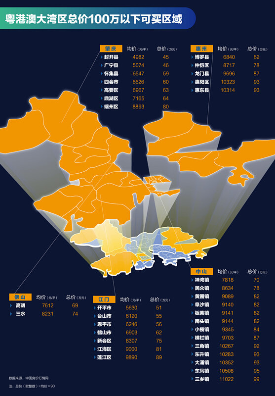 大湾区总价100万以内就能入手34个区域的二手房,其中江门、肇庆全市均可拿下!
