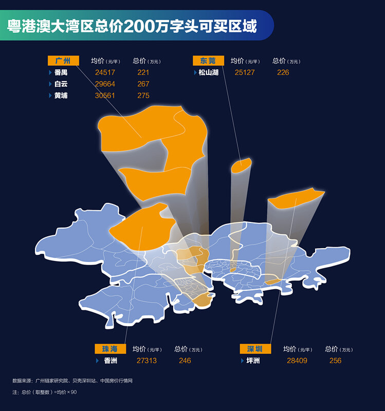 贝壳找房统计了粤港澳大湾区内陆城市的区域二手房价,共计9座城市85个行政区,以90平的刚需户型为例,看看总价100万-500万,有哪些置业板块可以挑!